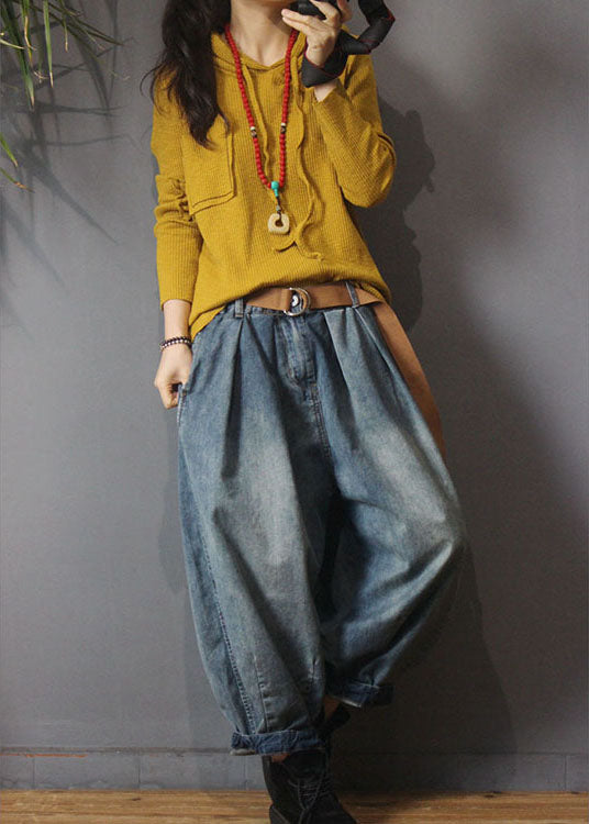 Naturgelbes, lässiges Strickoberteil mit Kapuze für den Herbst