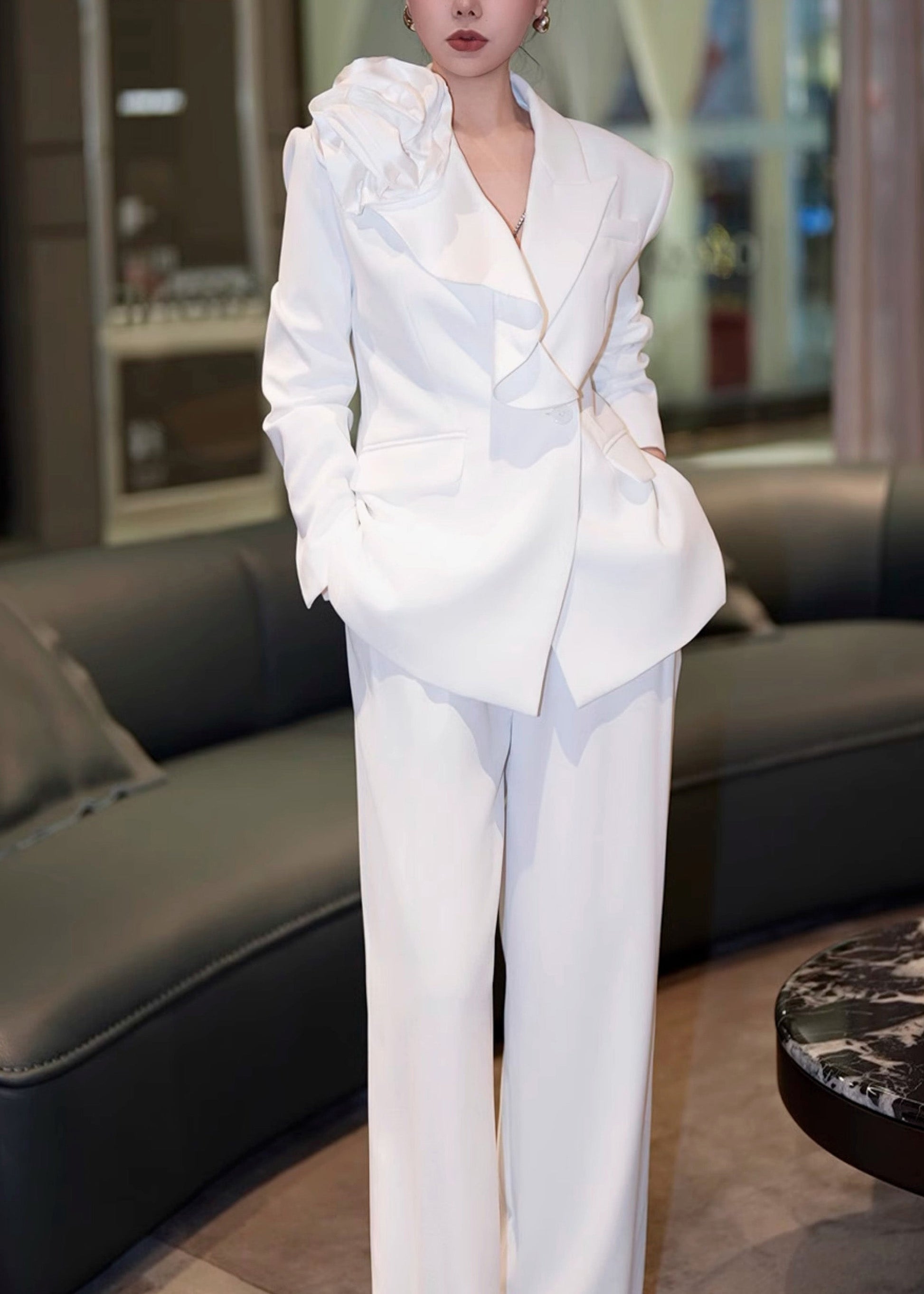 New Black Floral Suit Coat And Pants Women Sets 2 Pieces Fall