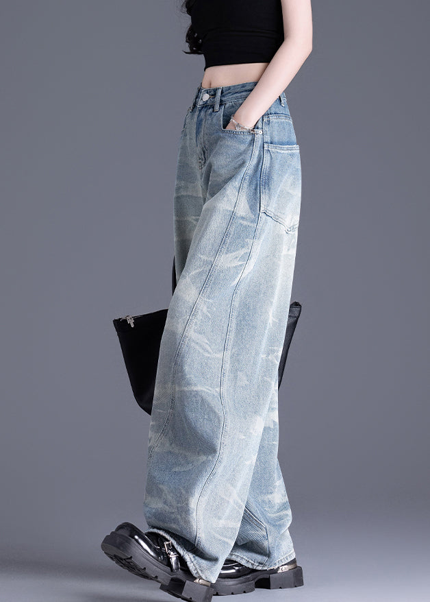 New Blue Pockets Tie Dye Patchwork Denim Pants Spring
