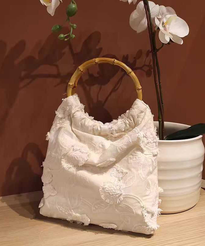 New Chinese Style Beige Embroidery Tassel Cotton Tote Bag
