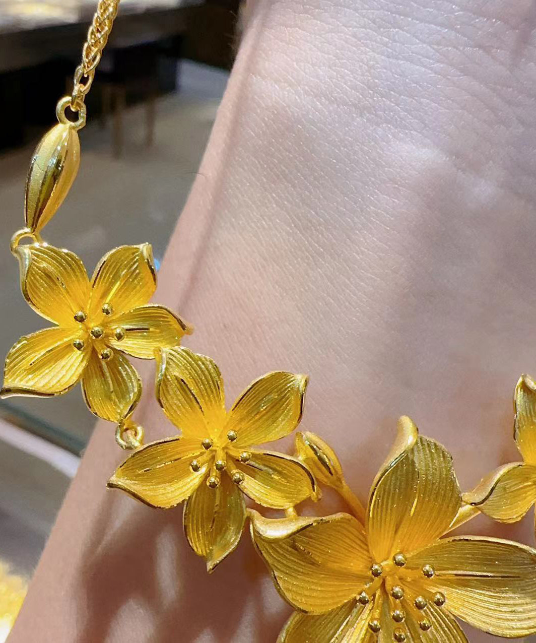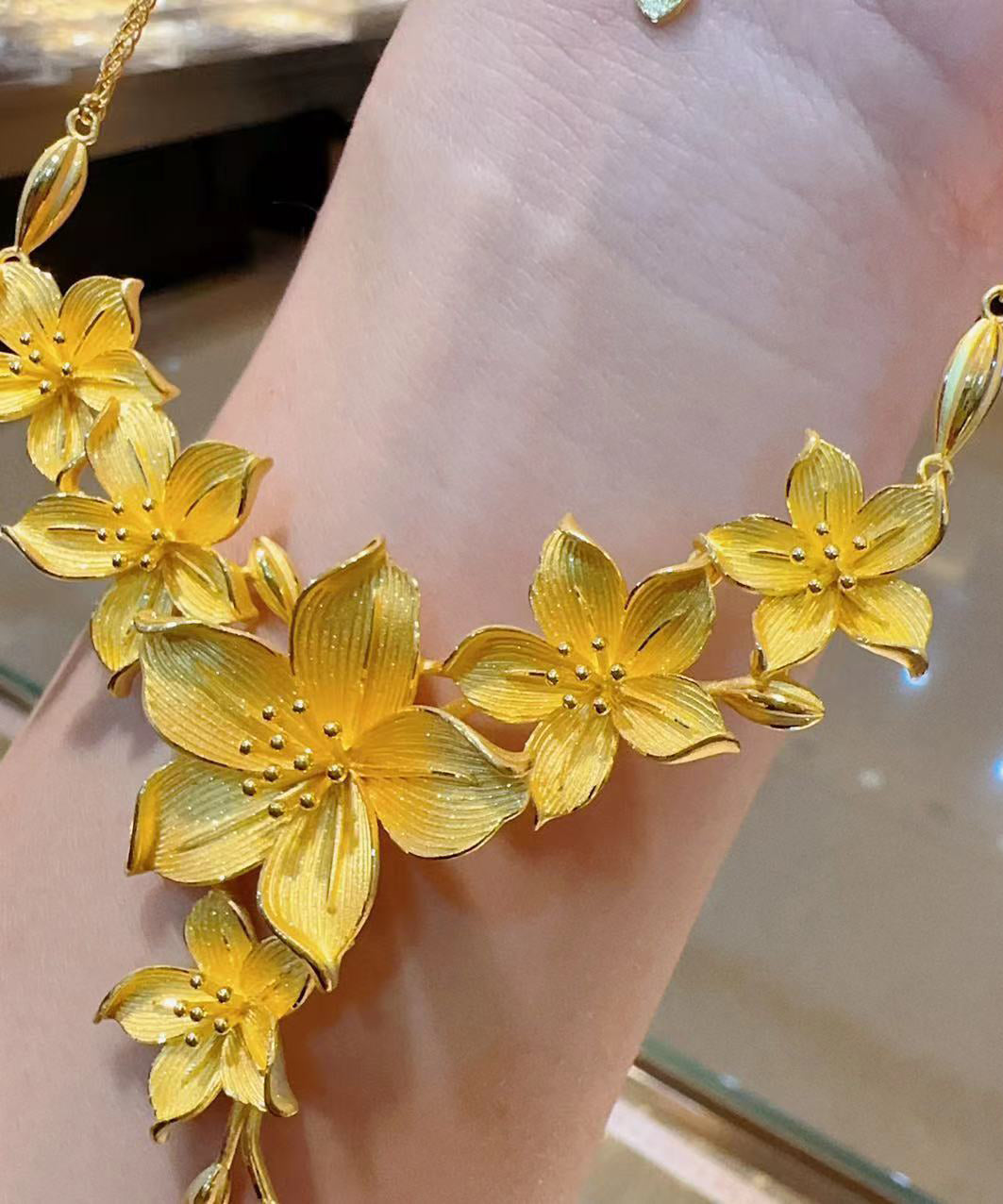 New Gold Sterling Silver Alloy Floral Tassel Pendant Necklace