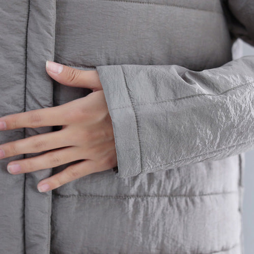Neu Graue Parkas Locker sitzende O-Ausschnitt Schneejacken Elegante chinesische Knopf Winter-Outwear