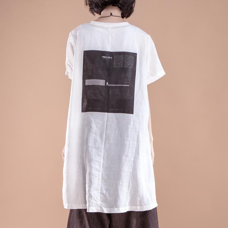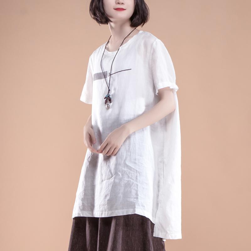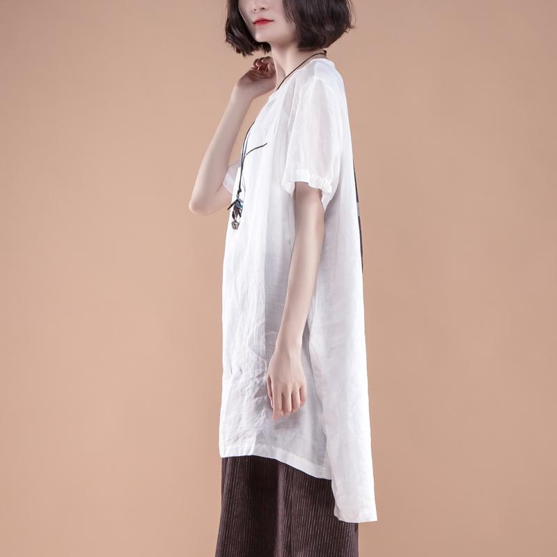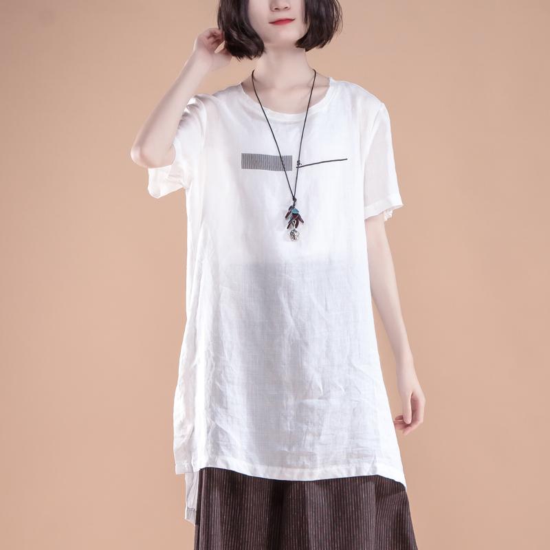Neue Leinenoberteile in Übergrößen Kurzarmschlitz Sommer Casual Weiß Damenoberteile