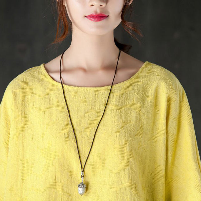 Neue Sommer T-Shirt Plus Size Kleidung Lose 12 Ärmel Gelb Jacquard Baumwolle Tops