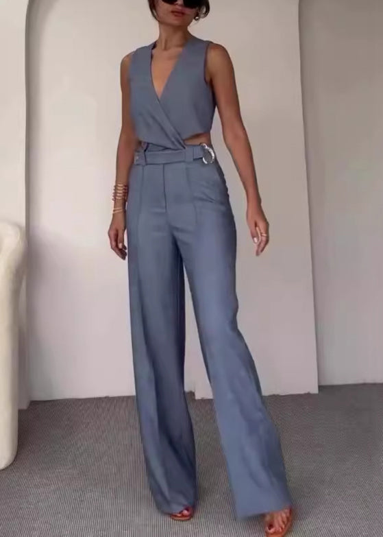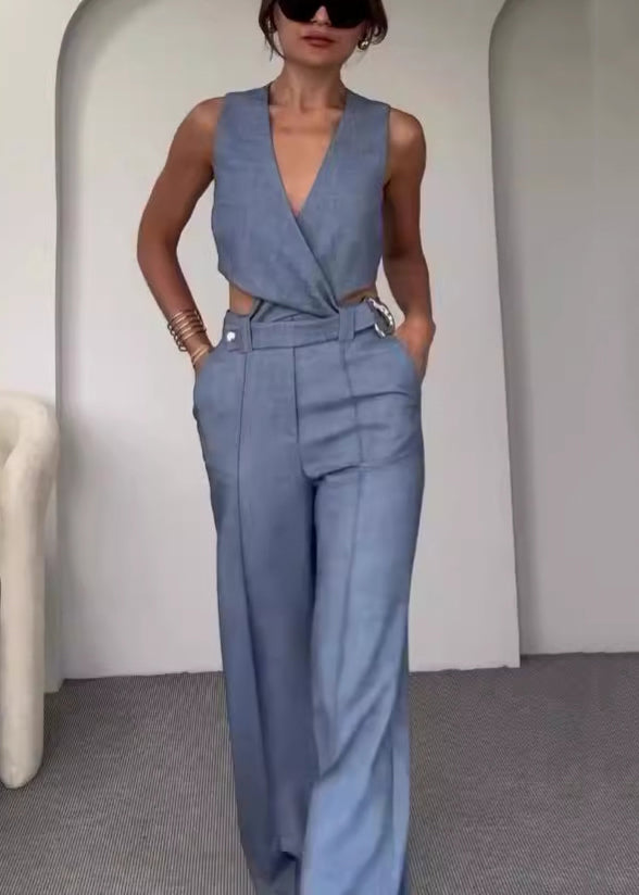 Neu Weiß V-ausschnitt Taschen Solide Baumwolle Zwei Stücke