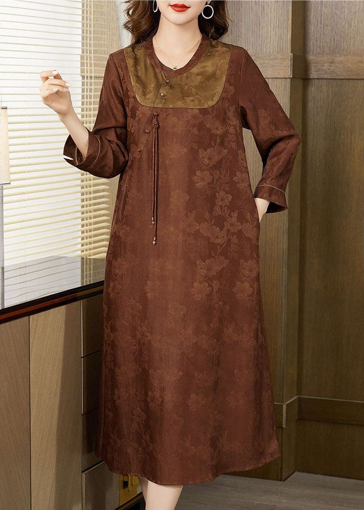 Orange Patchwork Seide Langes Kleid Quaste Jacquard Herbst