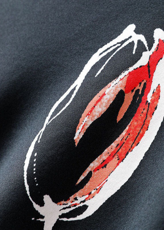Bio-Schwarzer A-Linien-Herbstrock mit modischem Print und Reißverschluss