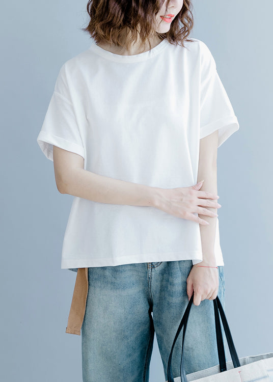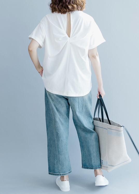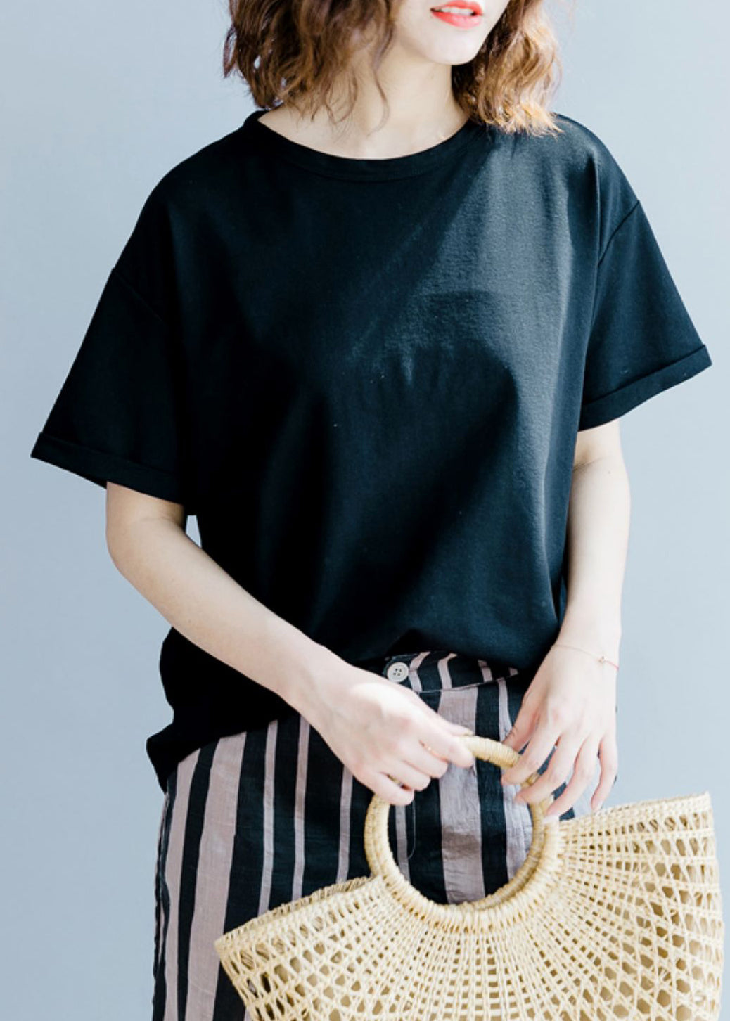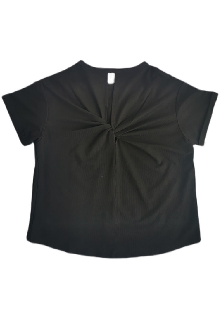 Schwarzes Bio-Baumwoll-Oberteil mit Rundhalsausschnitt und Schleife, kurzärmlig