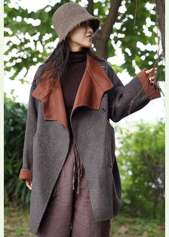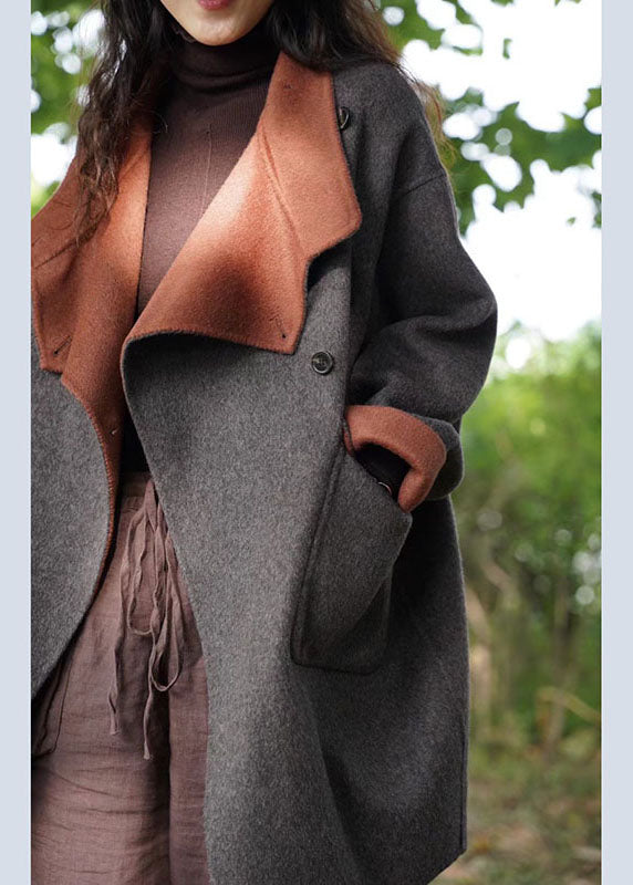 Bio Dunkelgrau PeterPan Kragen Taschen Lässiger dicker Wintermantel