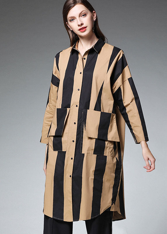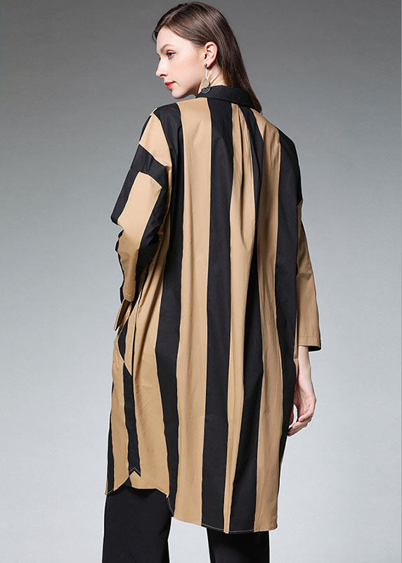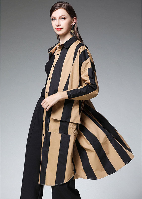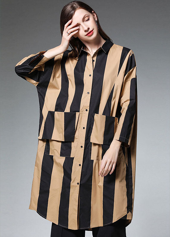 Bio Khaki gestreifte lange Hemden mit Peter-Pan-Kragen