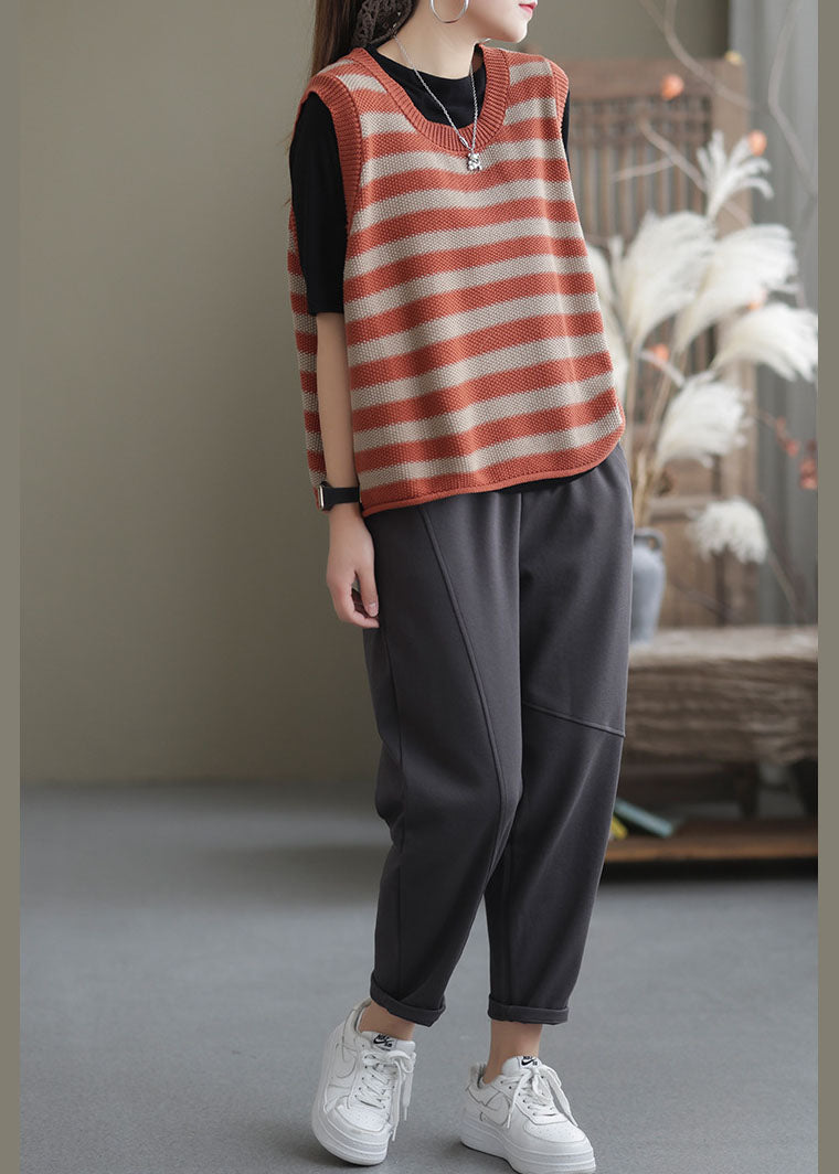 Ärmelloses Tanktop aus Bio-Orange mit Rundhalsausschnitt und Streifen