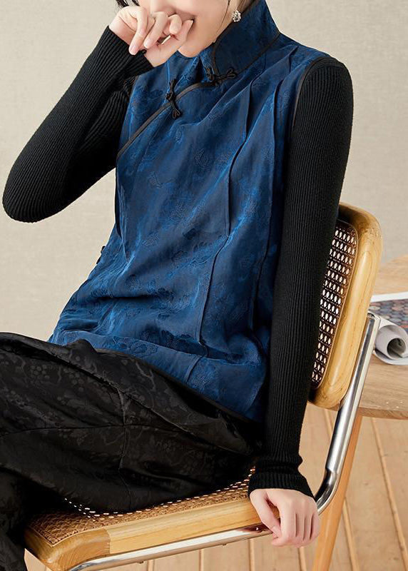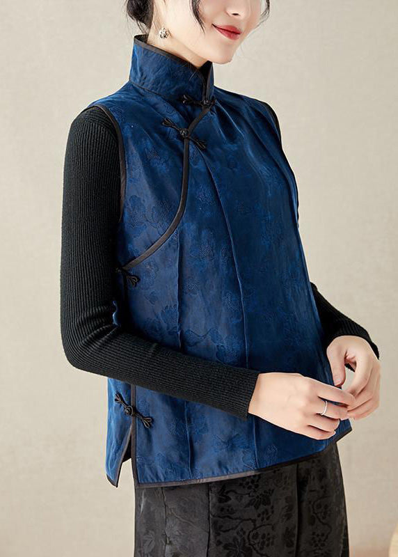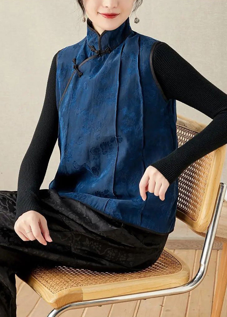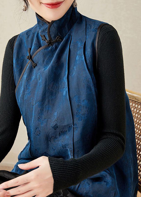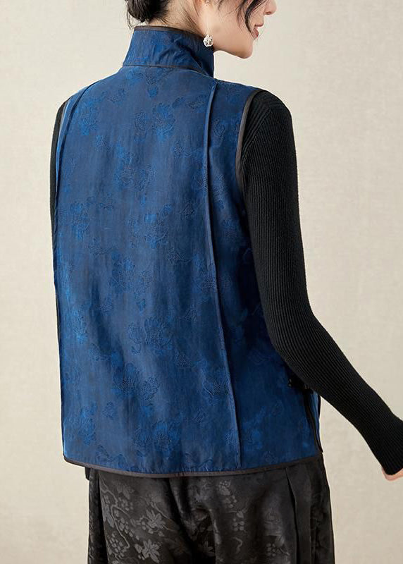 Bio-Stehkragen, bestickte Blumenknopf-Seidenweste, Frühling