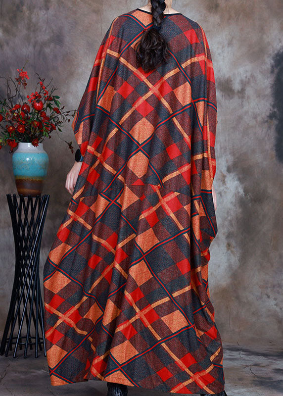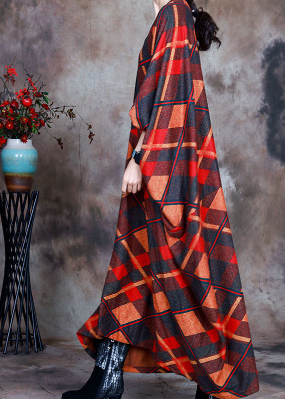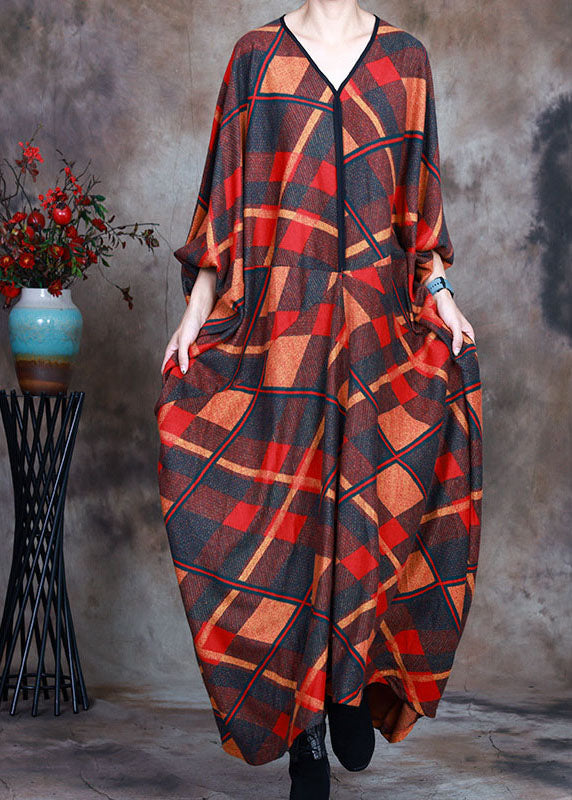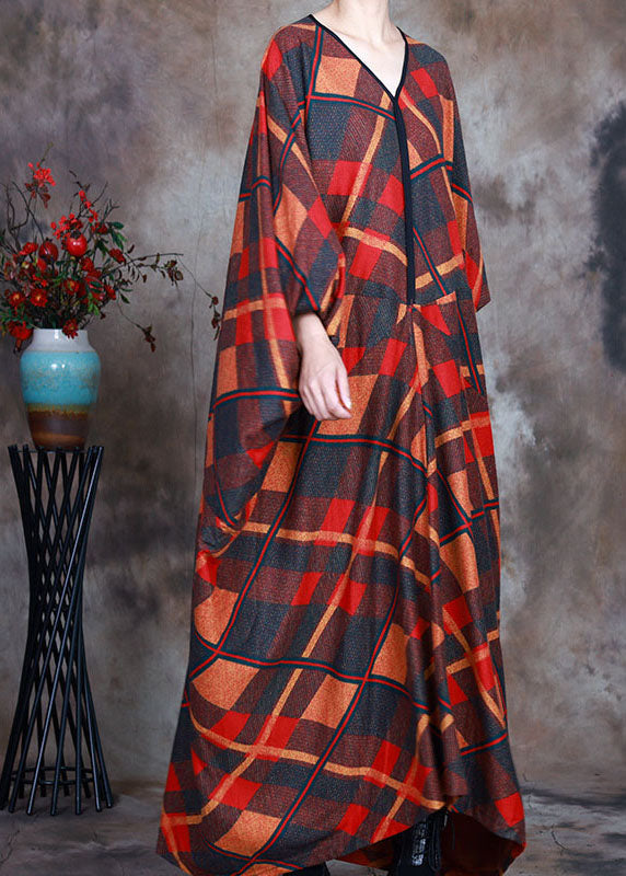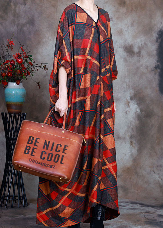 Bio-V-Ausschnitt-Print Kariertes Urlaubskleid Frühling