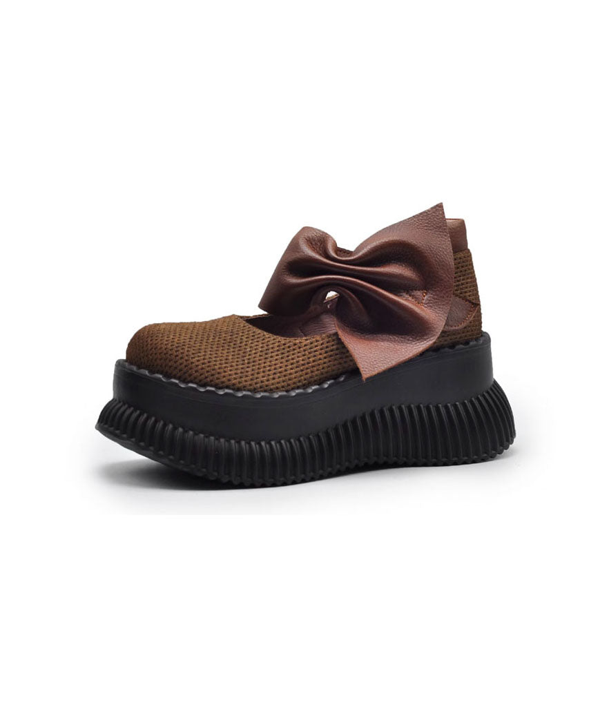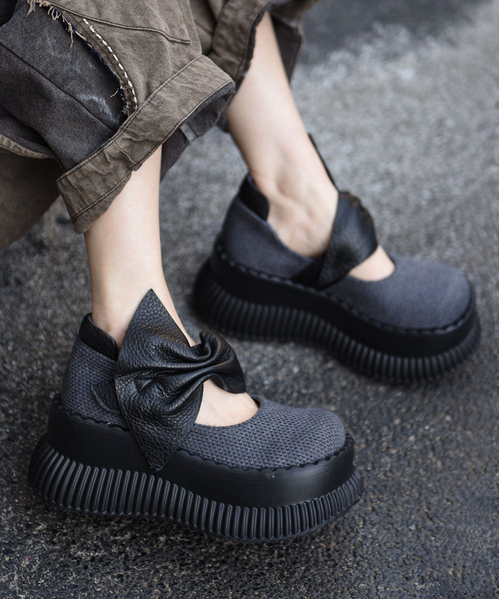 Original Design Black Bow Splicing Platform Heels Shoes