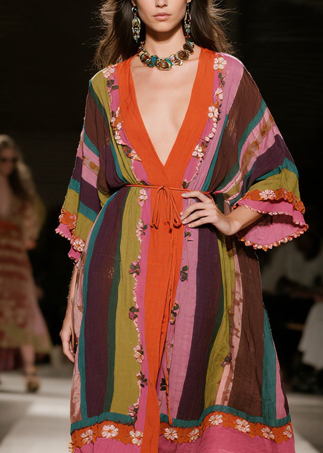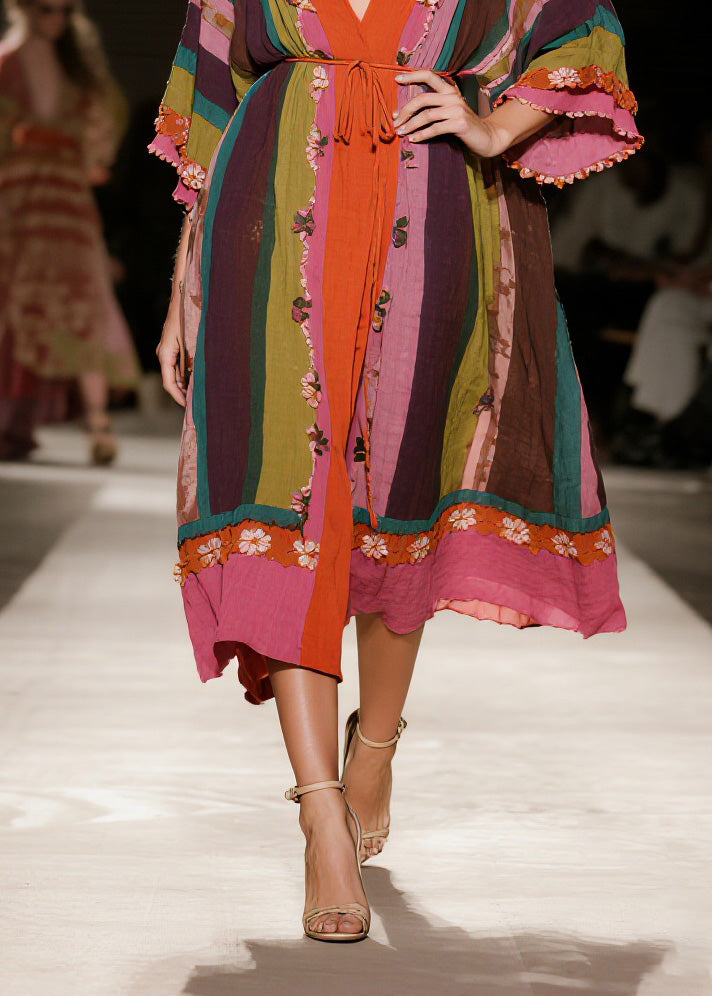 Original Design Colorblock V Neck Floral Cotton Dress Spring