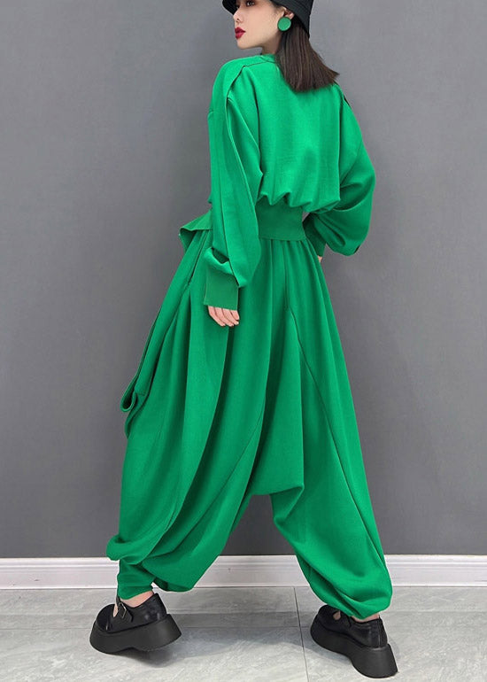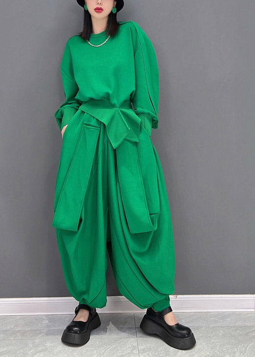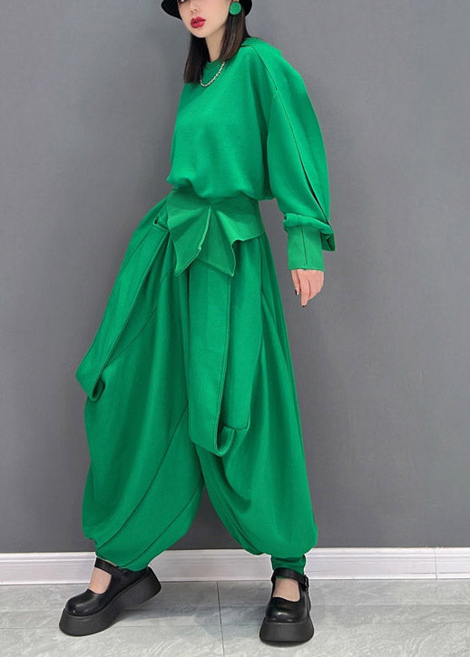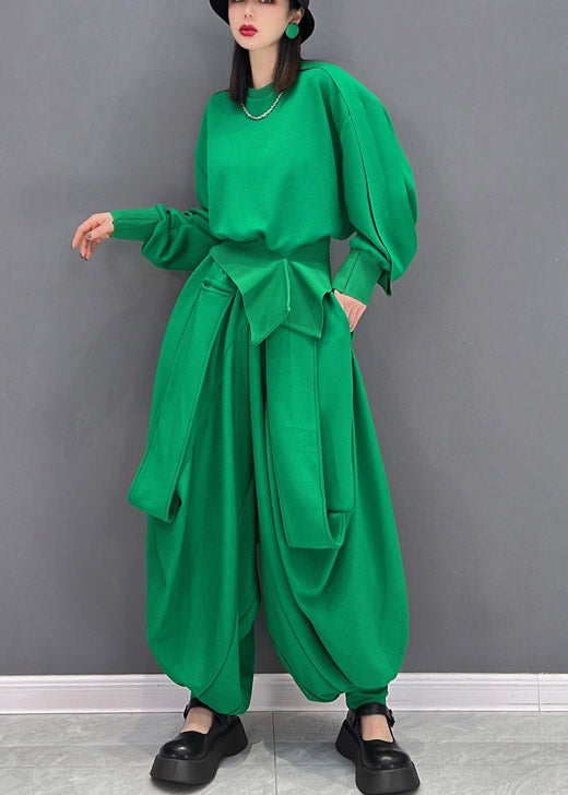 Original Design Solide Grün O-Ausschnitt Asymmetrische Lose Sweatshirts Top Und Harem Hosen Zwei Stück Set Langarm