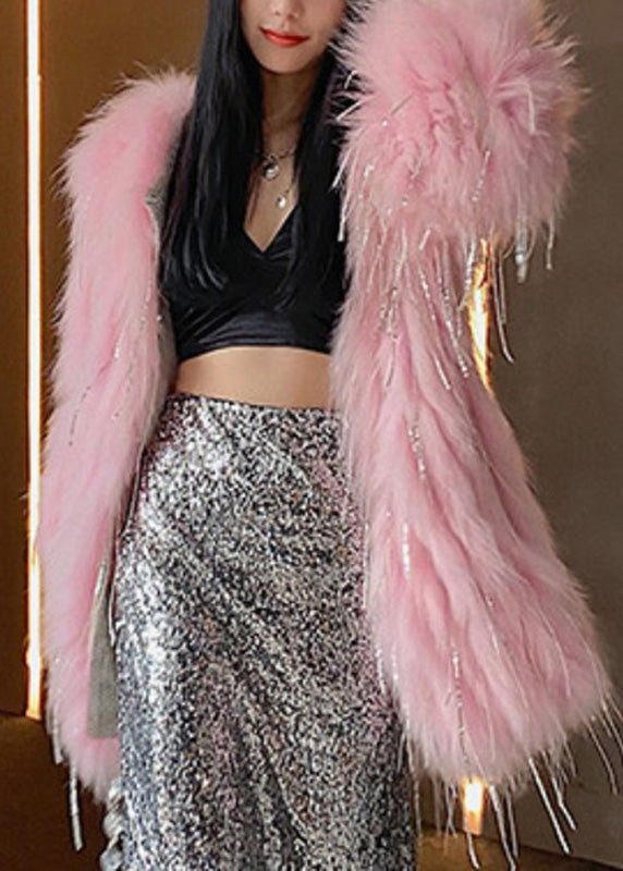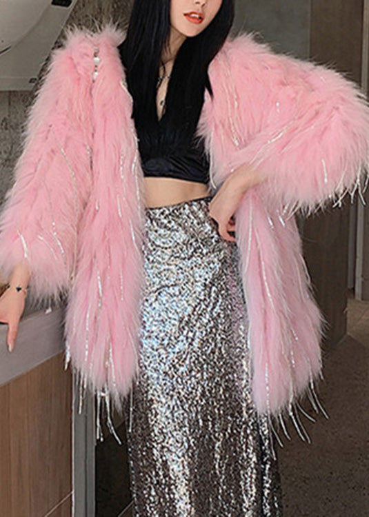 Rosa Kunstpelz Kragen Knopf Leder und Pelz lange Mäntel Winter
