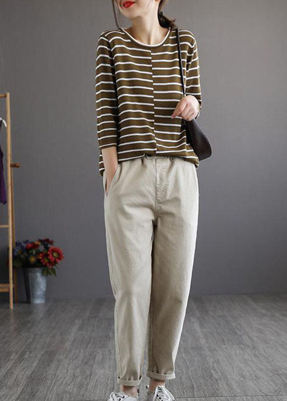 Plus Size Beige elastische Taille Taschen Baumwollhose Frühling