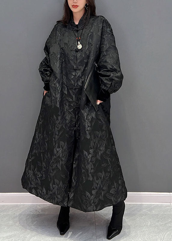 Plus Size Schwarz Oriental Button Jacquard Spandex Mäntel Herbst