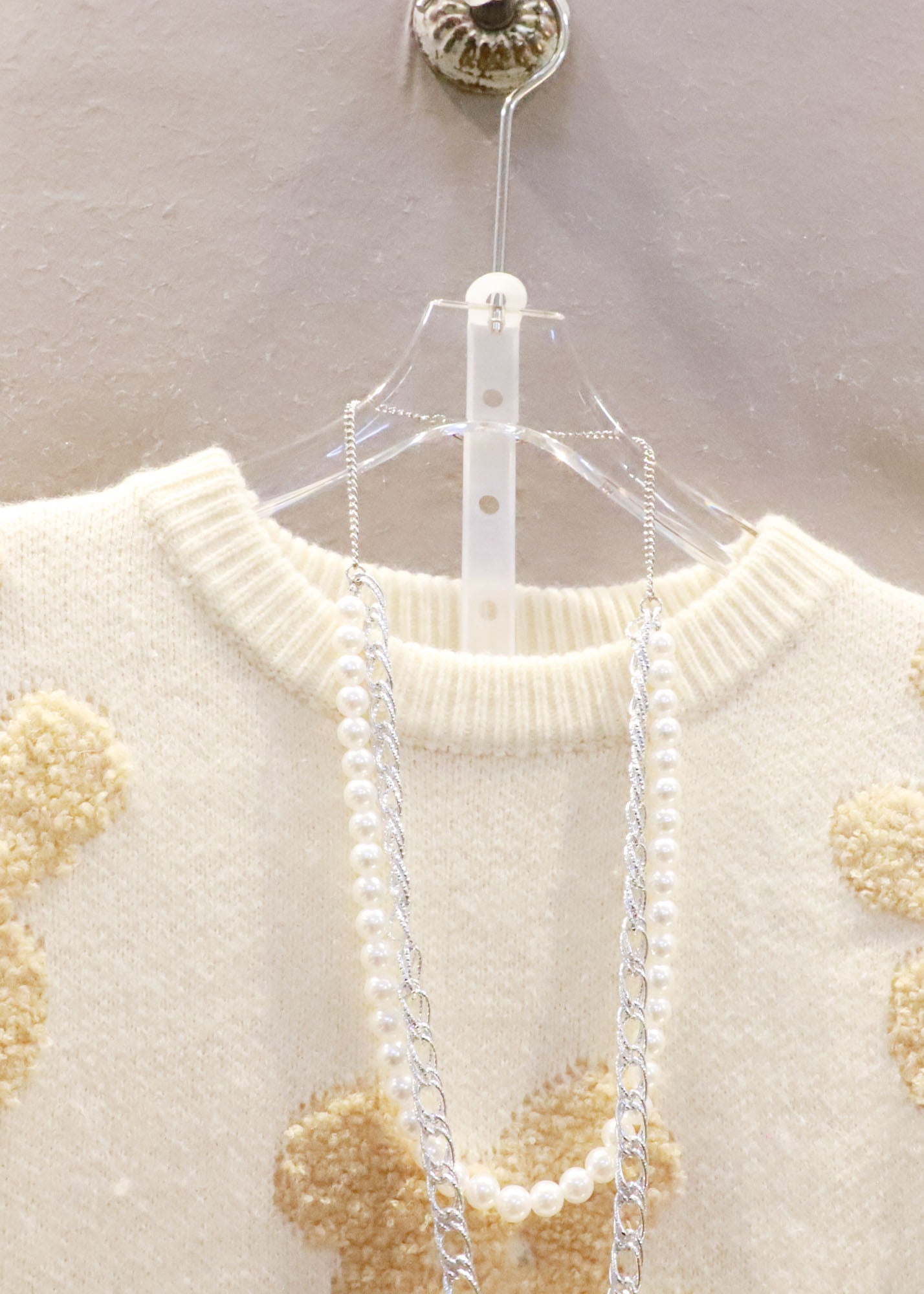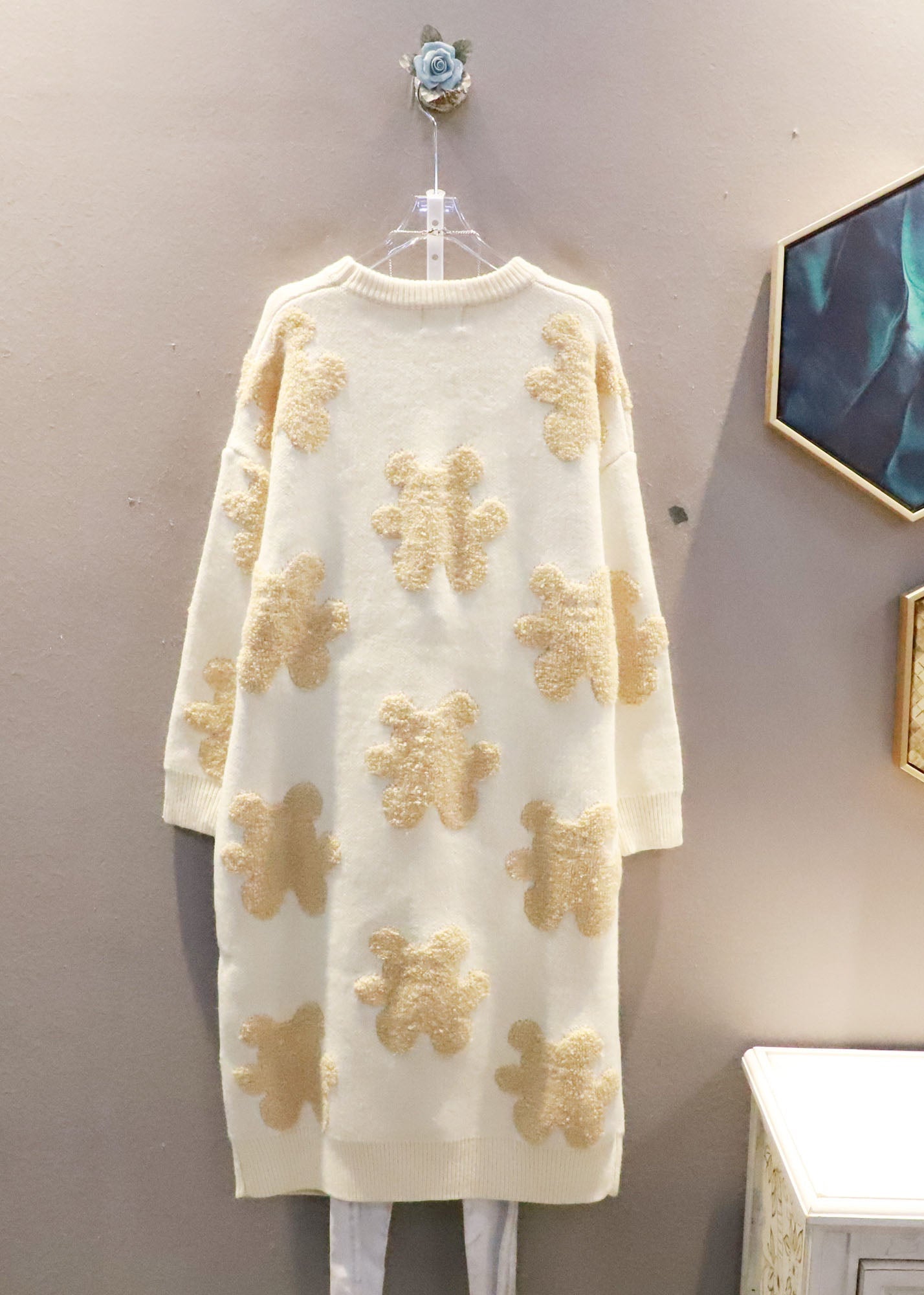 Plus Size Schwarz Oversized Bow Bear Jacquard Strick Langer Pullover Winter