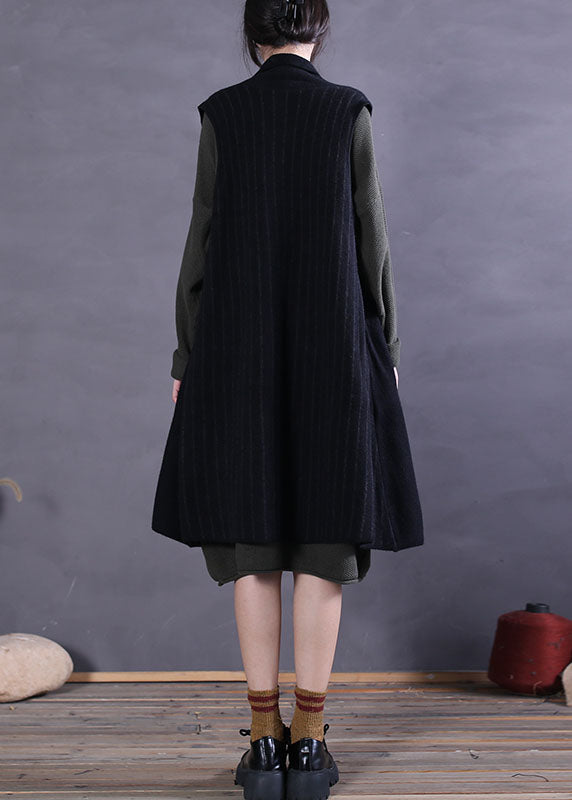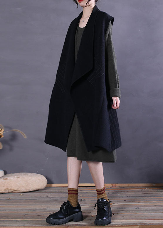 Plus Size Schwarze Peter Pan Kragen Patchwork Wolltanks Ärmellos