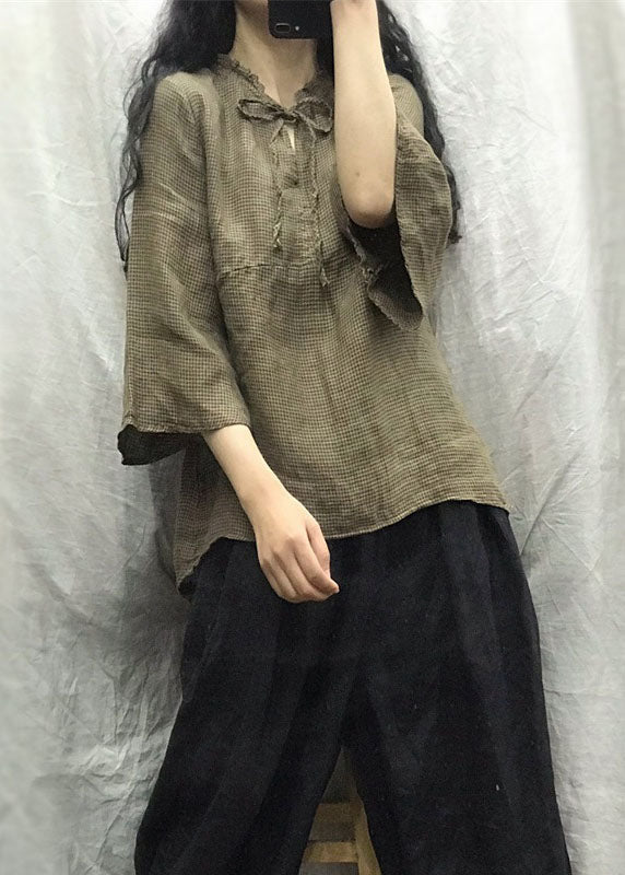Plus Size Schwarz Plaid Patchwork Casual Top Frühling