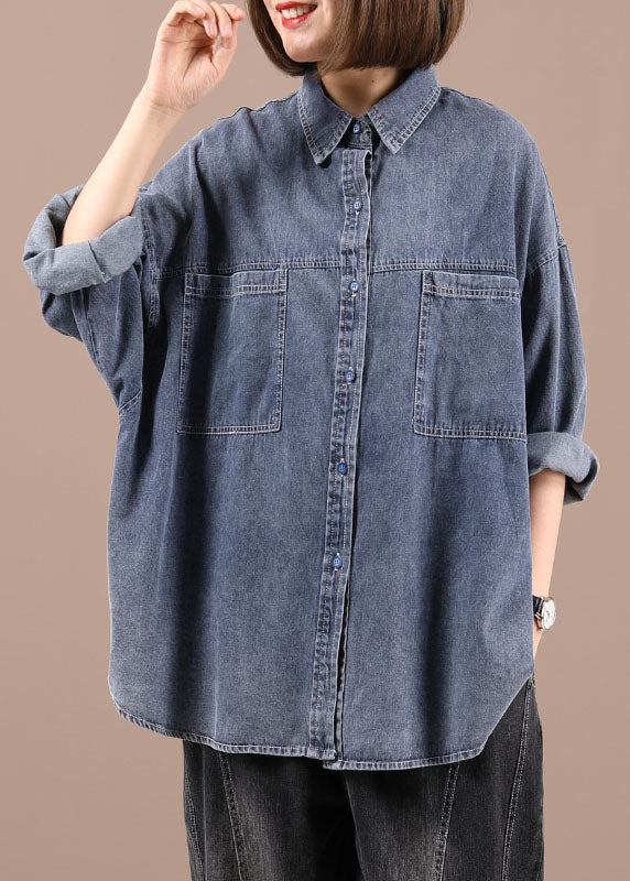 Plus Size Blau PeterPan Kragen Taschen Knopf Herbst Mantel Langarm