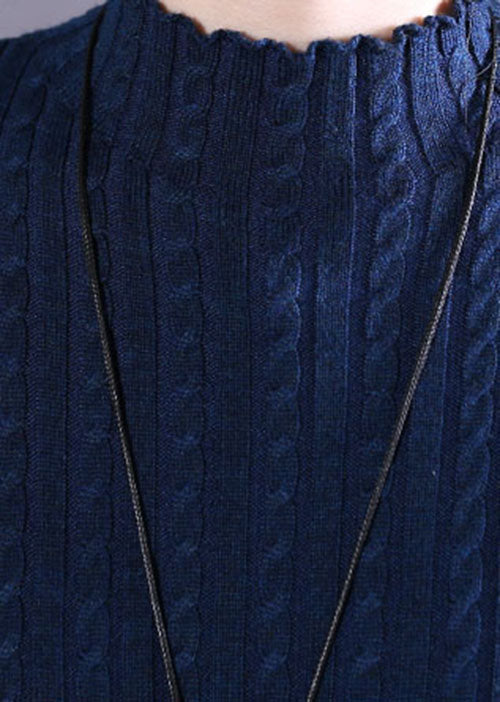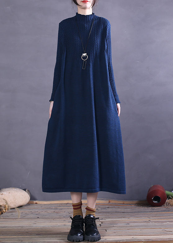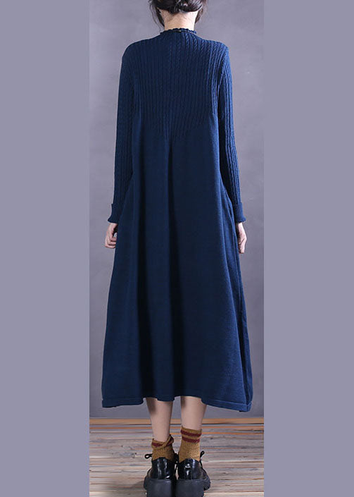Plus Size Blau Taschen Strick Urlaubskleider Frühling