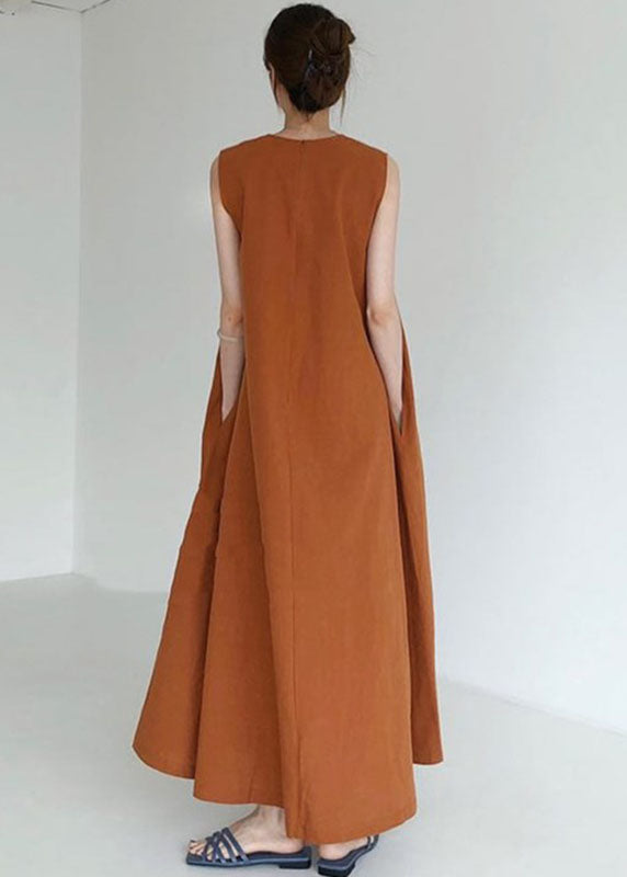 Plus Size Braun Rot Taschen Lockeres Baumwollkleid Ärmellos