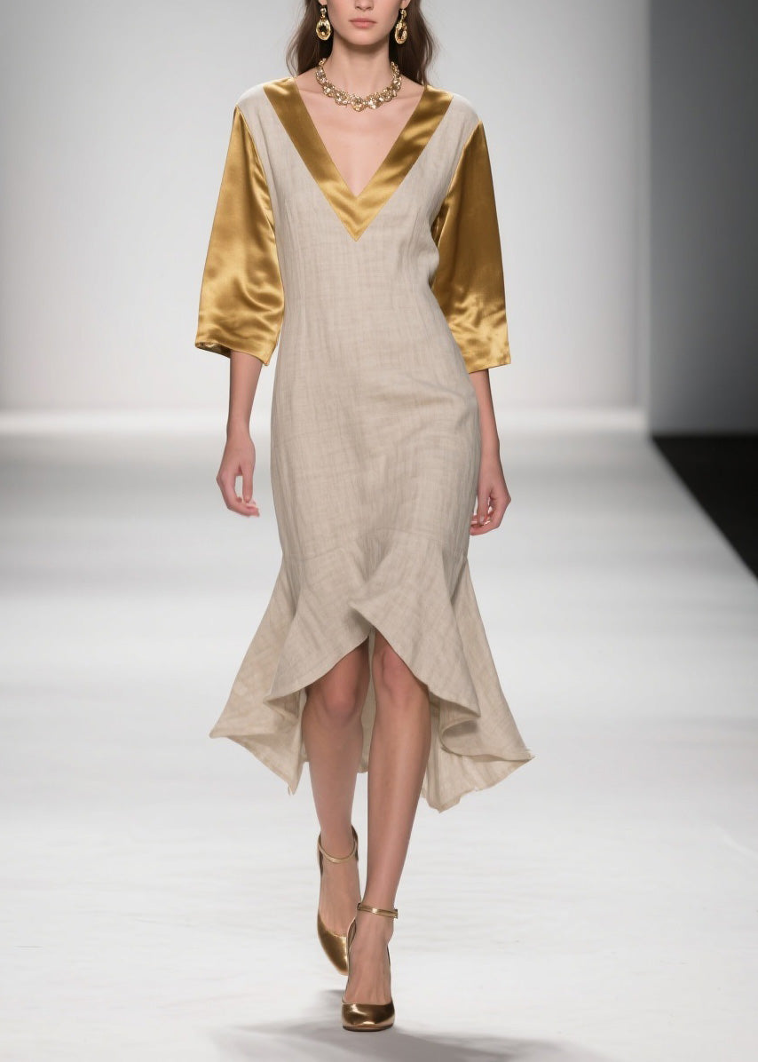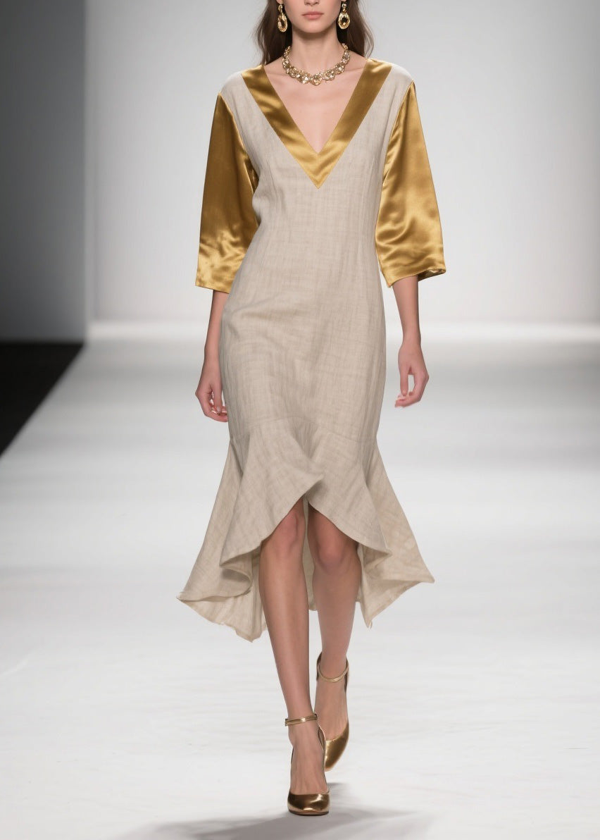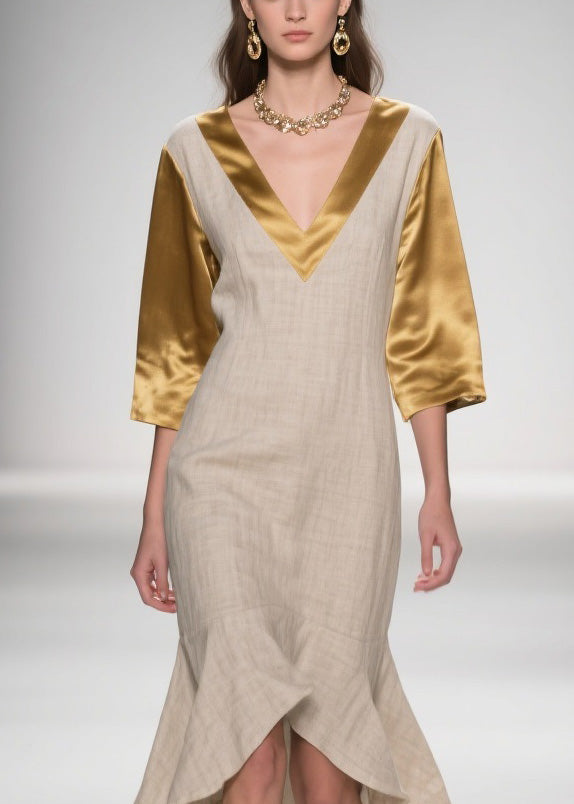 Plus Size Colorblock Ruffled Patchwork Linen Silk Dresses Summer