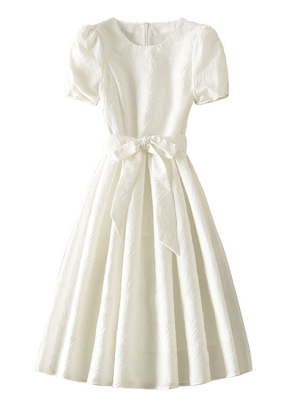 Plus Size DIY Weißes Reißverschluss-Schleifenkleid mit kurzen Ärmeln