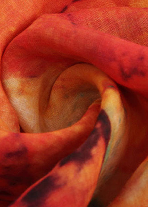 Plus Size Tailliertes Leinenkleid mit V-Ausschnitt und Print, Frühling