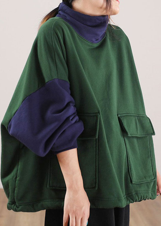 Plus Größe Grün Rollkragen Patchwork Baumwolle Sweatshirts Trainingsanzüge