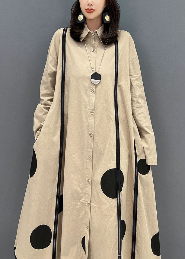 Plus Size Khaki Peter Pan Kragen Patchwork Dot Print Baumwolle Urlaubskleider Herbst