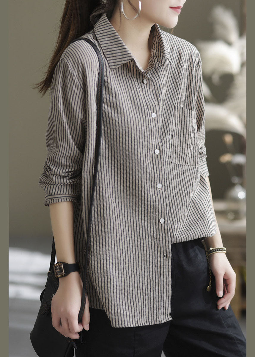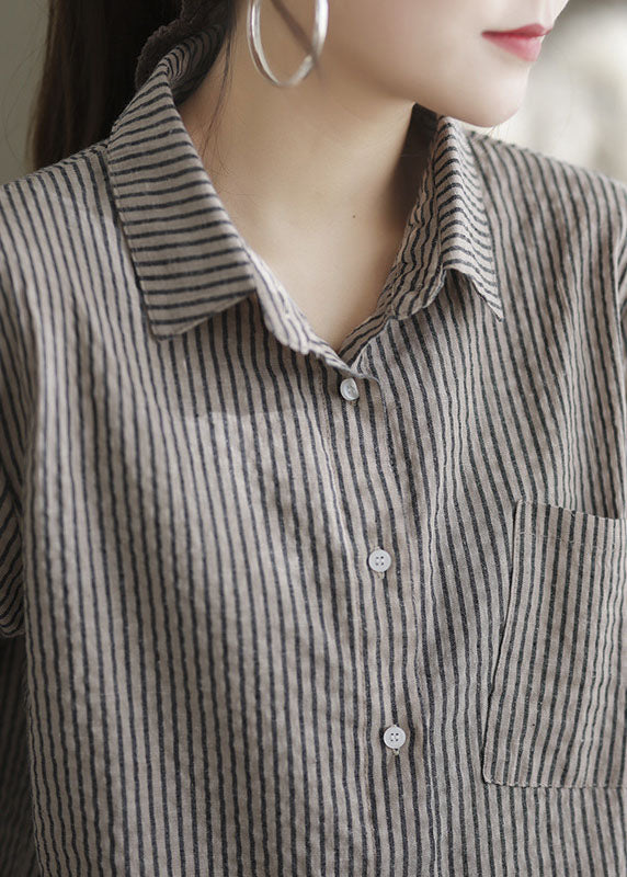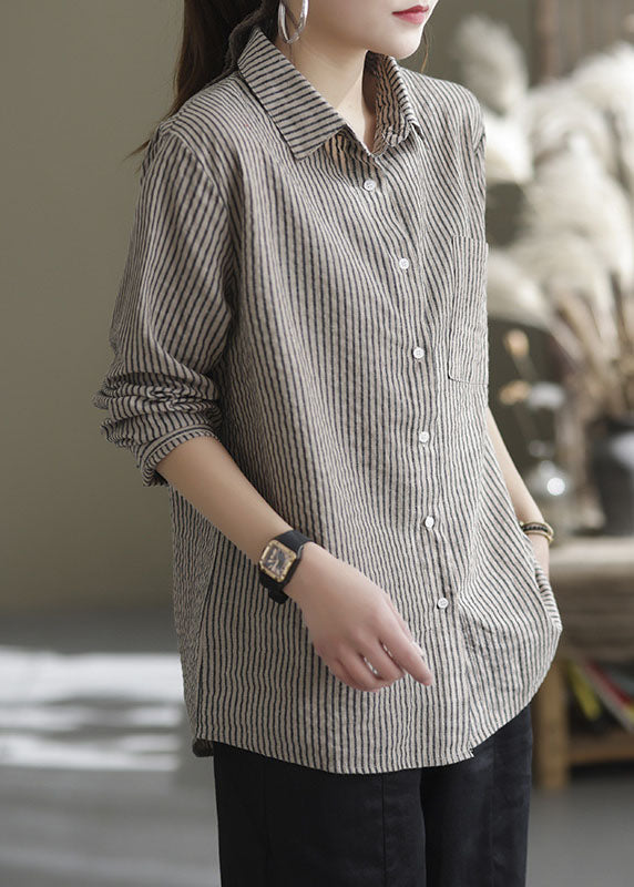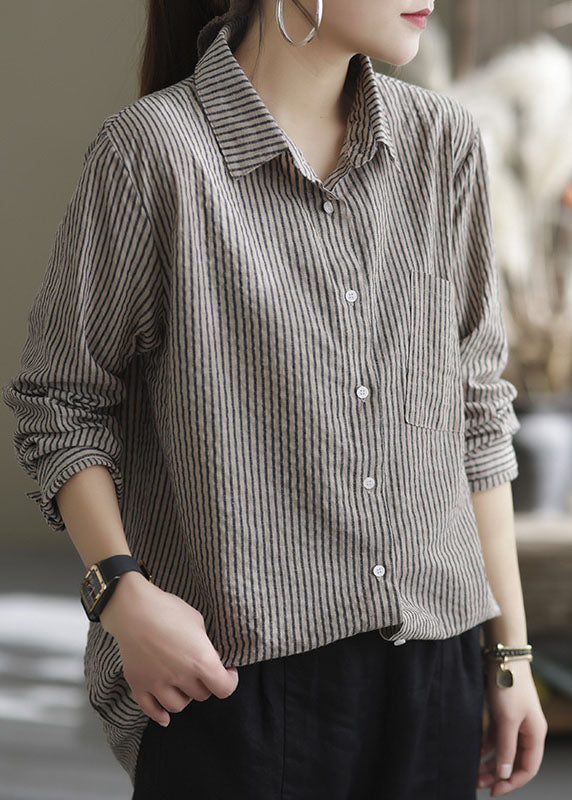 Plus Size Peter Pan Kragen Gestreifte Bluse Tops Frühling