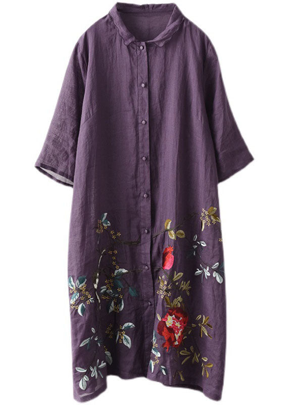 Plus Size Lila Knopf Besticktes Herbsthemd Halbarm