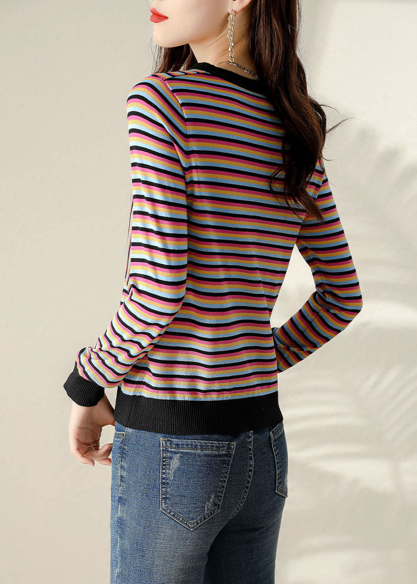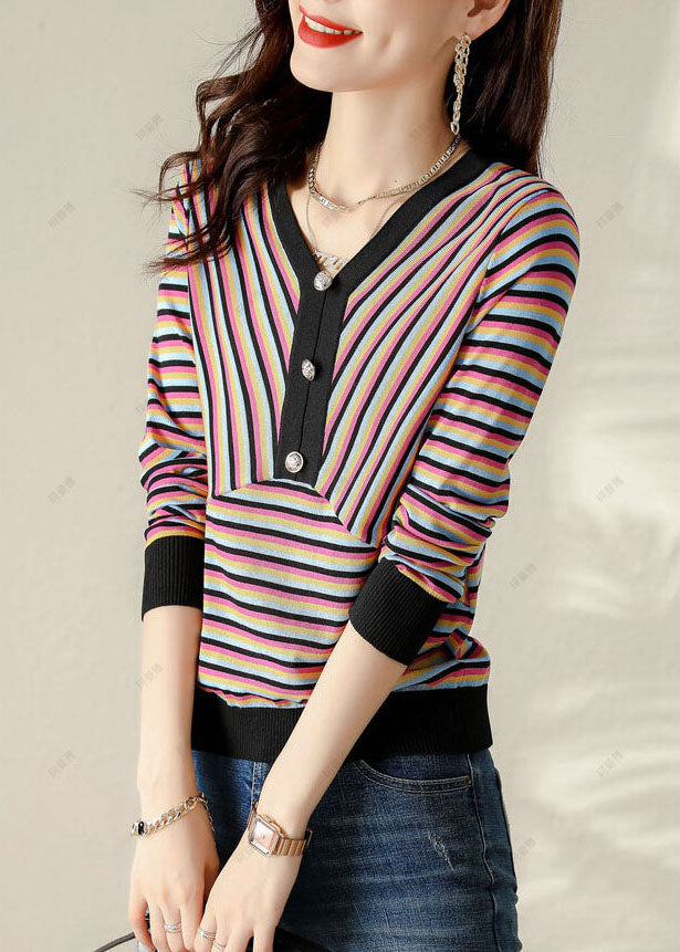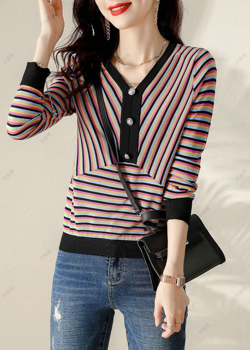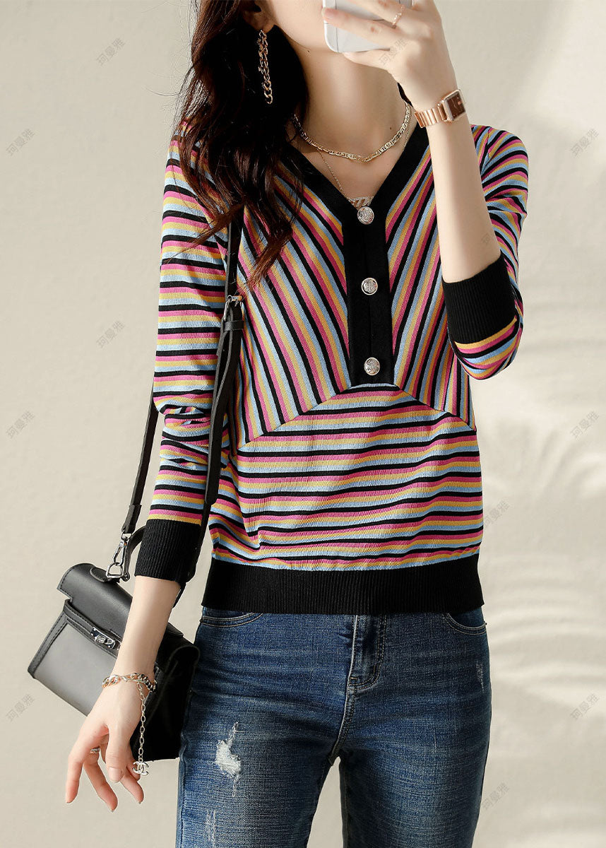 Plus Size V-Ausschnitt Gestreiftes Patchwork-Shirt Frühling