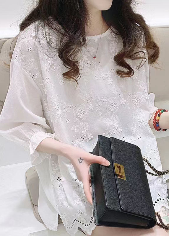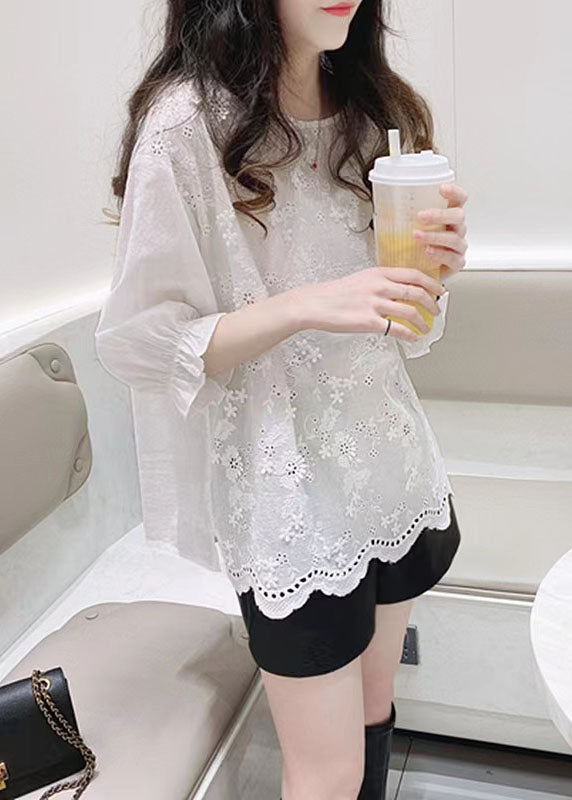 Plus Size Weiße Jacquard-Halbarm-Baumwollbluse Top Sommer