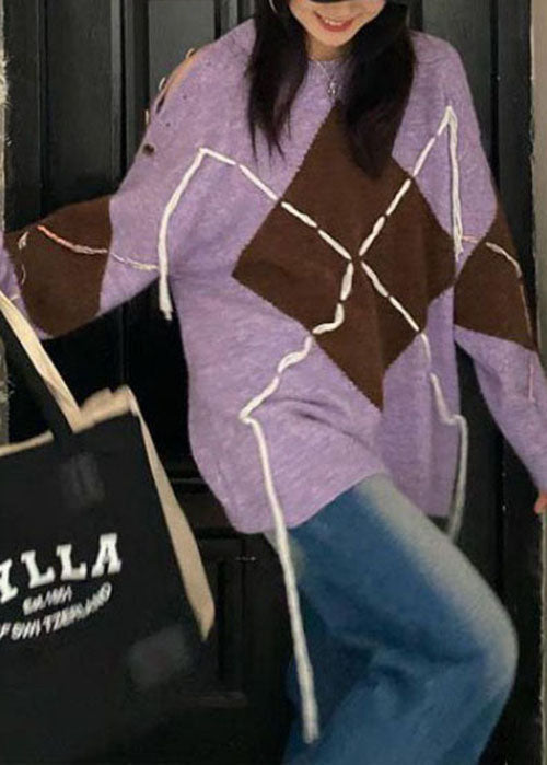 Lila gemütliche Strick Strick Tops Übergroßen Winter