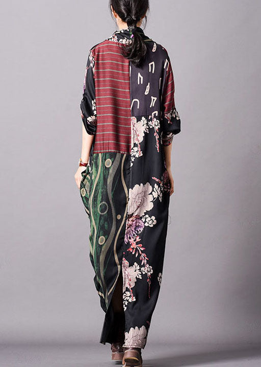 Rotes bedrucktes Knöchelkleid aus Seide, asymmetrisch, Frühling