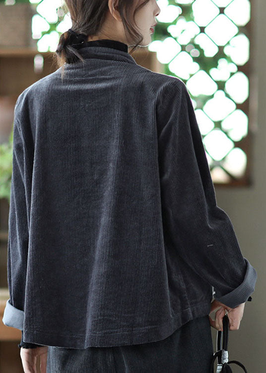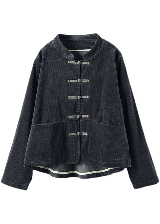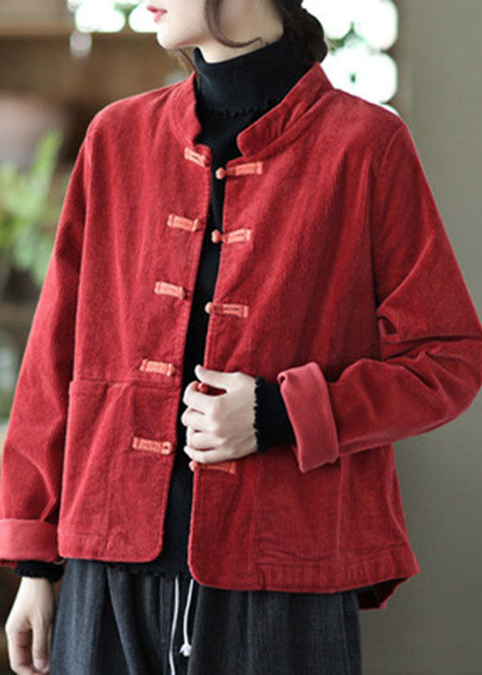 Roter Stehkragen Knopftaschen Patchwork Herbst Cordmäntel