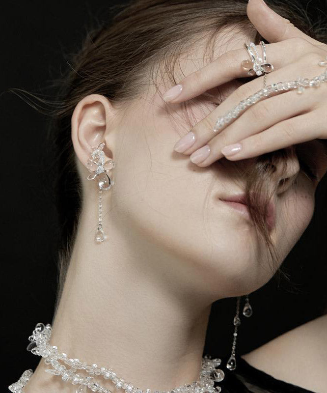Regular Nude Copper Silvering Glass Bead Asymmetricar Floral Tassel Drop Earrings