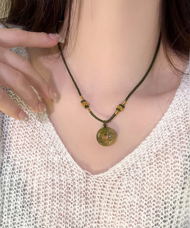 Retro Blackish Green Hand Knitting Resin Ping Buckle Pendant Necklace