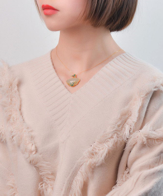 Retro Blue Sterling Silver Gilded Inlaid Cloisonne Jade Pendant Necklace