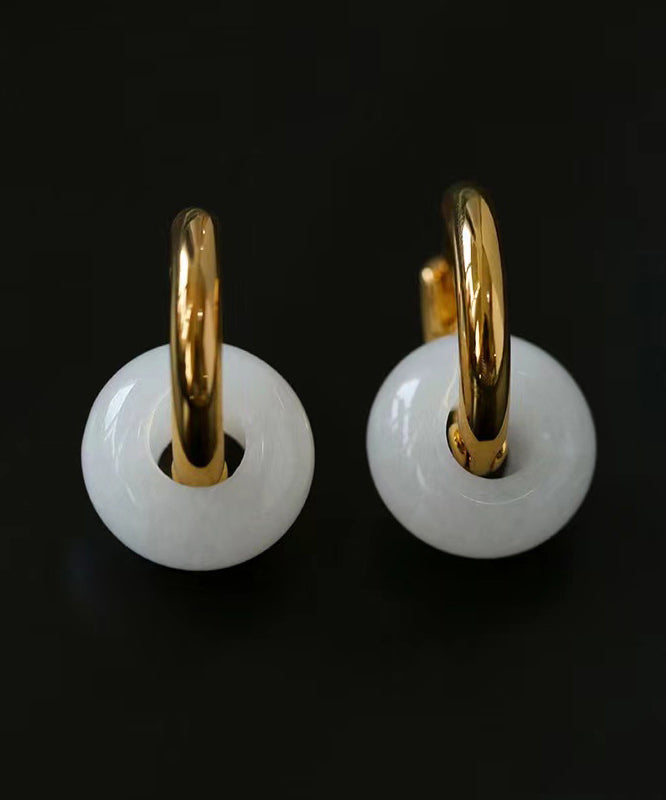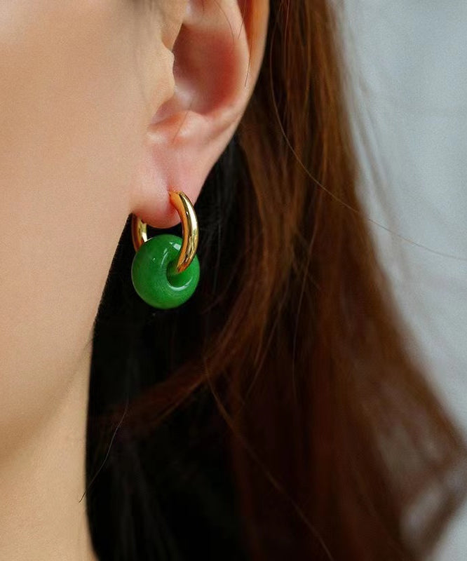 Retro Blue Sterling Silver Overgild Gem Stone Jade Hoop Earrings
