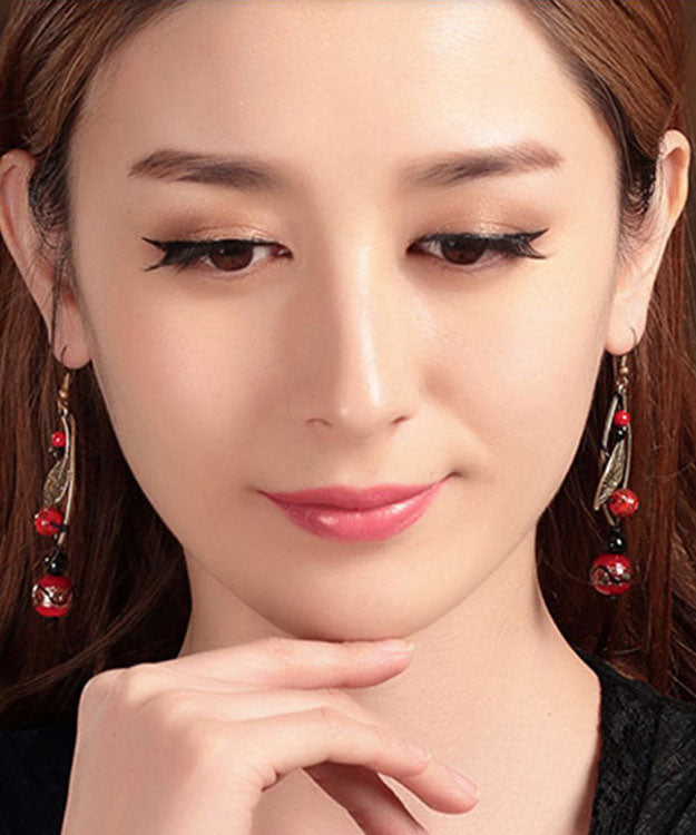 Retro Red Sterling Silver Alloy Cloured Glaze Agate Gem Stone Drop Earrings
