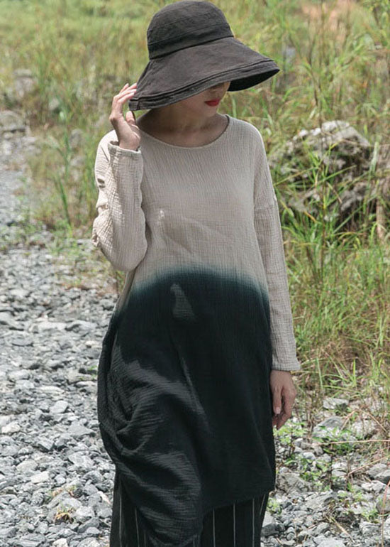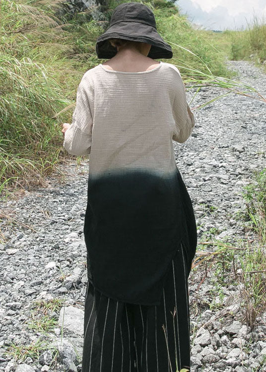 Einfache Aprikose O-Ausschnitt Farbverlauf Baumwolle Tops Frühling