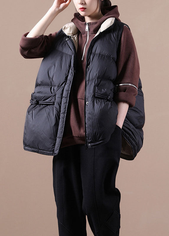 Einfache schwarze süße lose Knopf dicke Winter ärmellose Puffer Weste