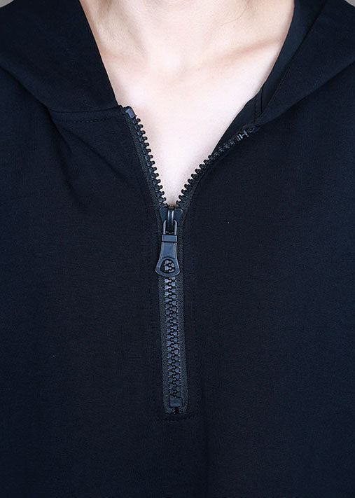 Einfache schwarze Mode Kapuze Patchwork asymmetrisches Design Herbst Maxi Kleider