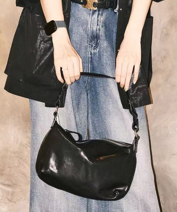 Simple Black Solid Durable Leather Cross-body Handbag